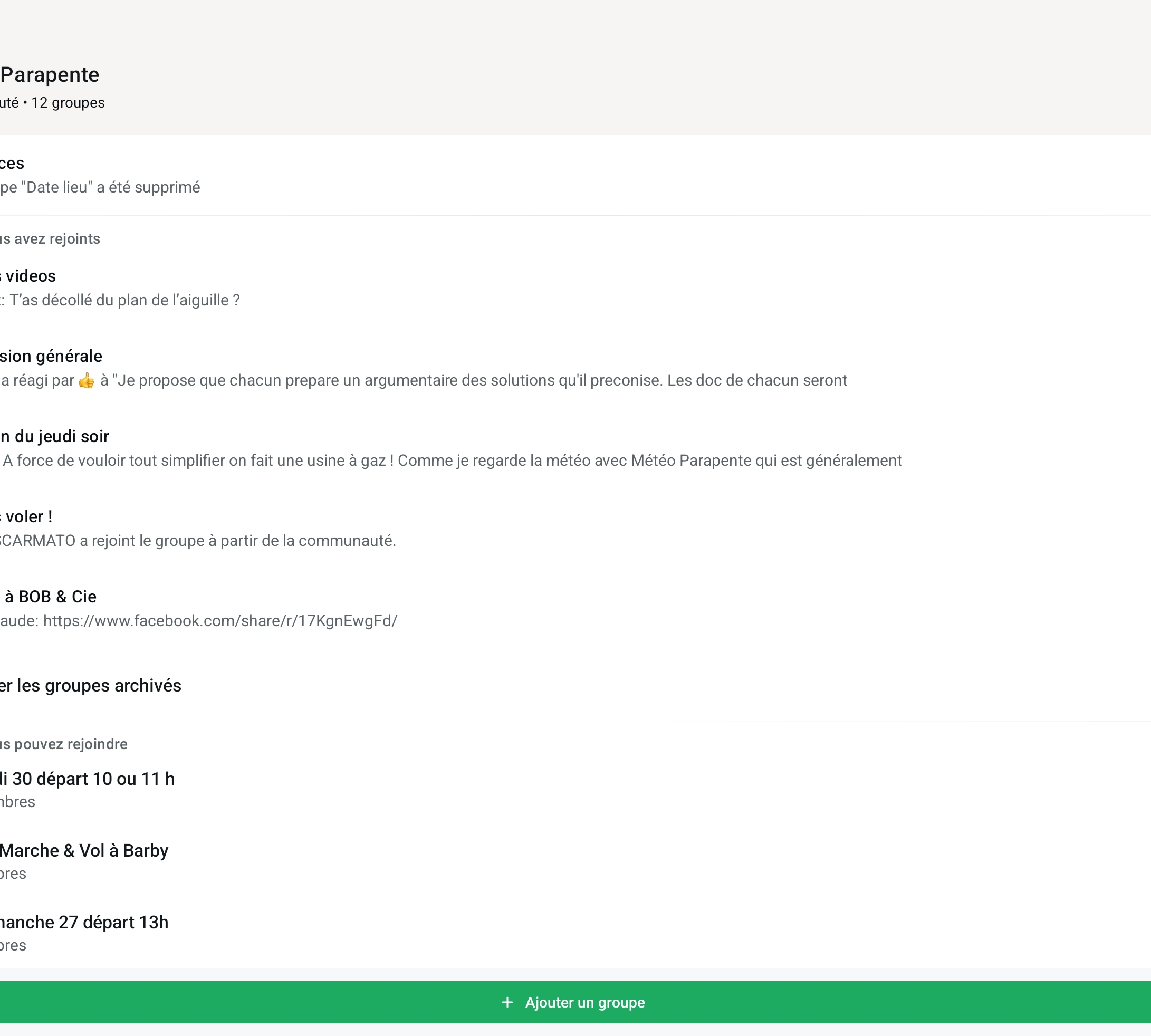 La même page d’info contient des options qui permettront de copier et d'envoyer un lien d’invitation à rejoindre le groupe ==> Ce lien pourra être diffusé à toute la communauté dans le groupe « je vais voler » ou par mail ou par tout autre outil Les partants s’ajouteront et recevront les notifications relatives à cette seule sortie. Les autres membres de la communauté ne recevront rien |