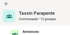 Sur la page d’accueil de la communauté faire apparaître le menu « clic droit » (par un appui maintenu sur le groupe) ==>
